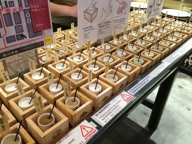 500円で5枚のメダルが渡されまして、メダルごとにお猪口一杯の日本酒がいただけるというもの。セルフサービスですが大量の銘柄から選ぶことができます。