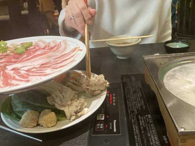 多くを食べられなくなった二人は品数が少なめの豚しゃぶコースを選ぶ。