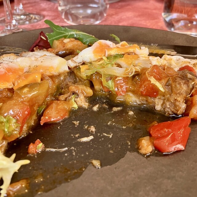 ソースが濃厚でワインが進む。