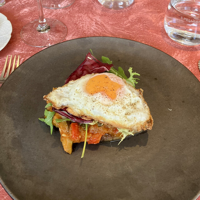 彩り鮮やかな温かいラタトゥイユがかかり、