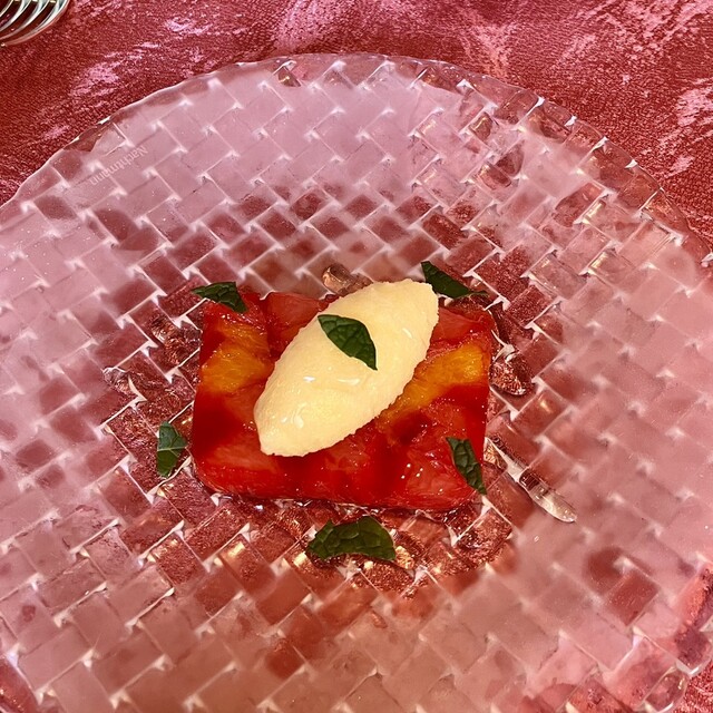 メニューB6,600円、グレープフルーツのカンパリゼリー寄せ ゴールデンパイナップルのソルベ