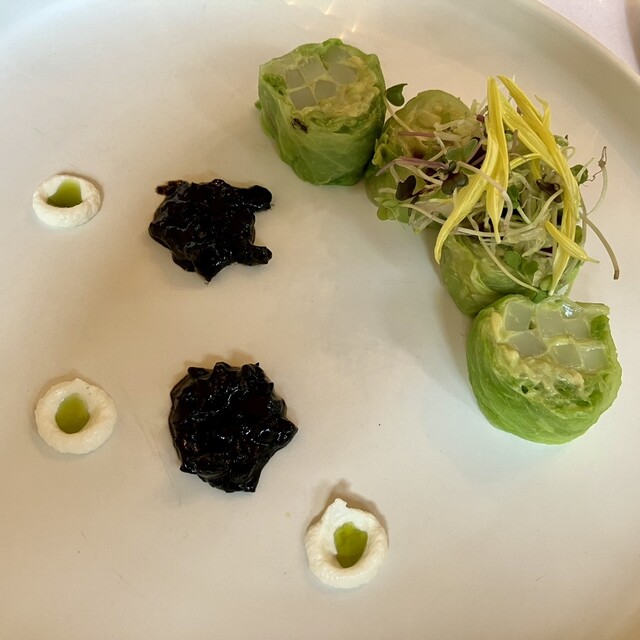 アンディーブのサラダとホタテのカルパッチョ クルミとゴルゴンゾーラ