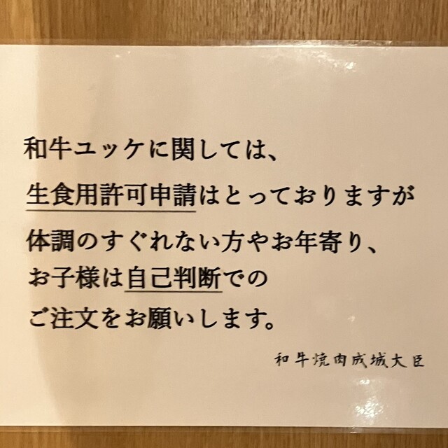 ユッケ注意書き