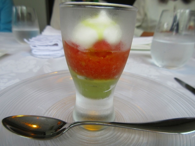 トマトとスイカ、アヴォガド、ヨーグルトのガスパチョ