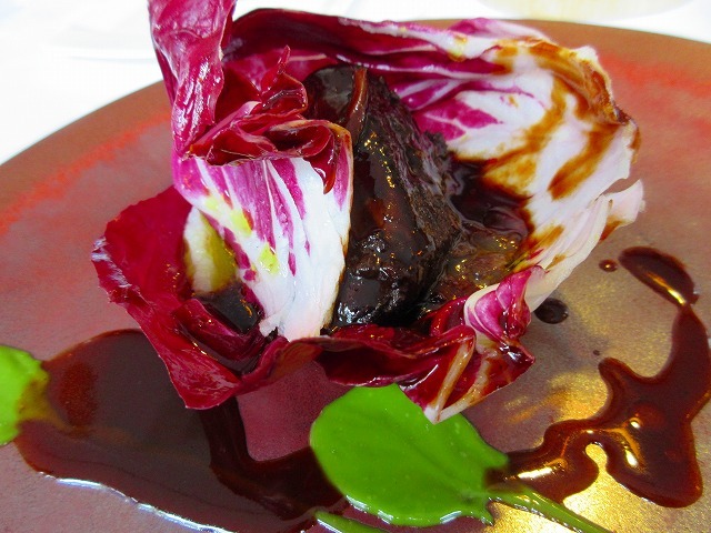 信州牛赤ワイン煮込み、ほろ苦いトレヴィスと共に 見た目も芸術品