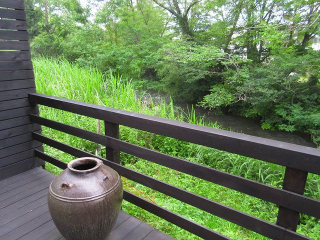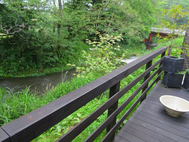 店裏側の風景 川が流れています