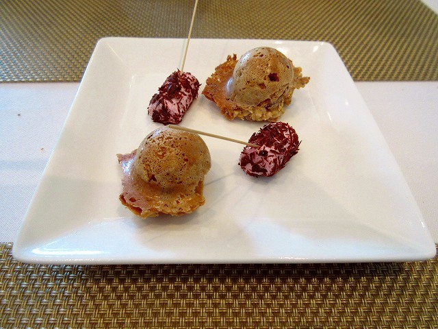右のムースは、稚鮎を1匹使って作ったムースだそうです。