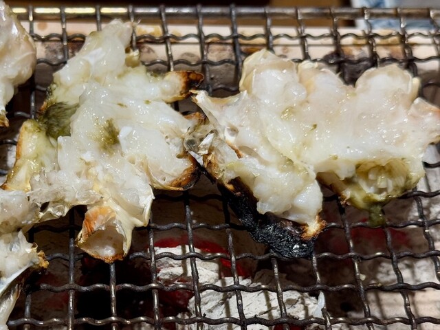 焼き蟹は、炭火の上でじっくりと焼かれた蟹からは、香ばしい香りが立ちのぼり、食欲をそそります。ふっくらと焼き上がった身は、箸を入れるとほろりとほぐれ、口に運ぶと凝縮された甘みと旨味がじんわりと広がります。炭火ならではの香ばしさが加わり、さらに深い味わいを生み出します。