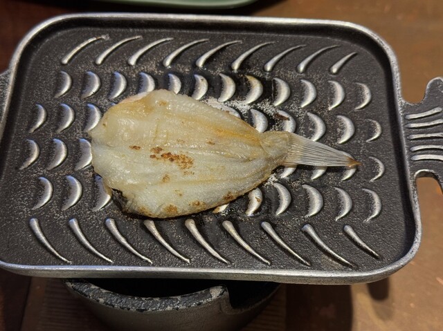 朝食の膳が運ばれ、湯気の立つ炊き立てのご飯とともに、彩り豊かな小鉢が並びます。まず目を引いたのは、目の前の小さな鉄板の上で焼かれる魚の干物。じっくりと火が通るにつれて、ふんわりとした香ばしい香りが広がり、食欲をそそります。箸を入れるとほろりと身がほぐれ、噛むたびに旨味が口いっぱいに広がりました。