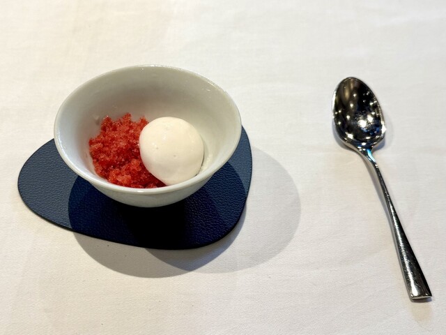 最後の「ラフランスのソテ、ショコラと白味噌」は、白味噌の塩気とショコラの甘さが混ざり合う、和と洋の境界線を越えたような極上の逸品です。