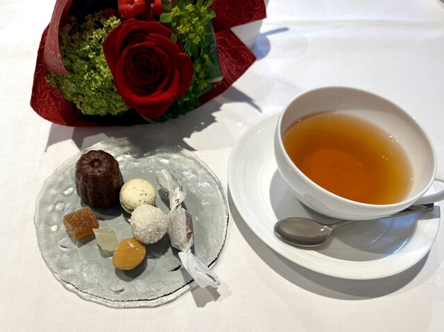 締めくくりにはカヌレやマカロン、キャラメルなど小菓子と共に、ダージリンファーストフラッシュをいただきました。爽やかな香りと澄んだ味わいが、食後の余韻をさらに引き立ててくれます。