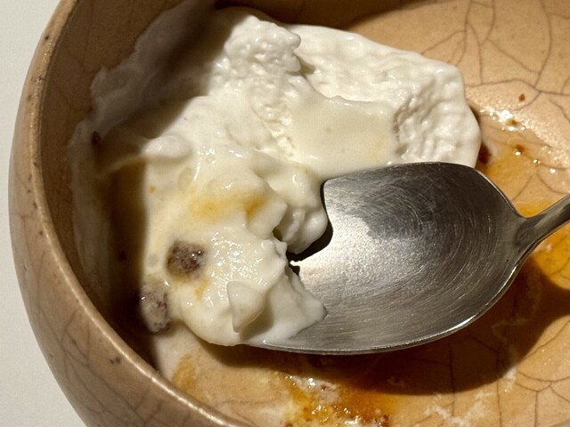 スプーンを深く差し込むと、底には枇杷とオレンジで仕立てたジャムが隠れており、柑橘の爽やかさとほのかな苦味が心地よく追いかけてきます。