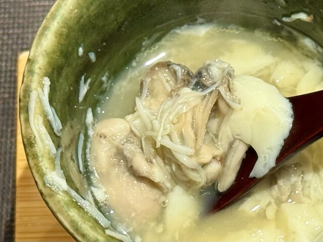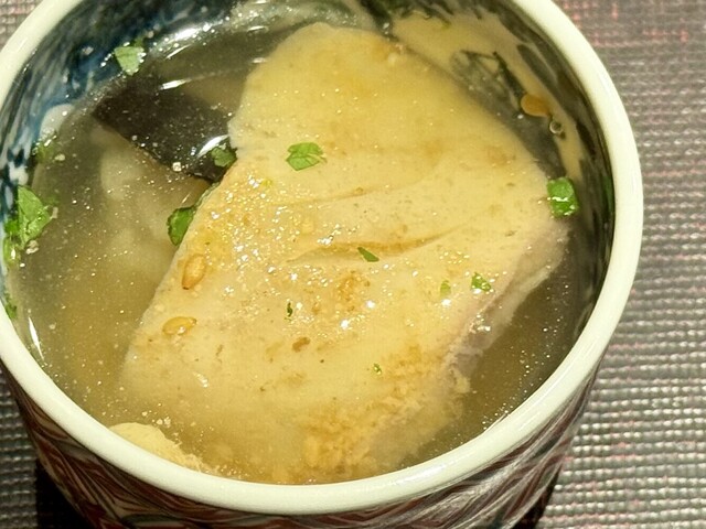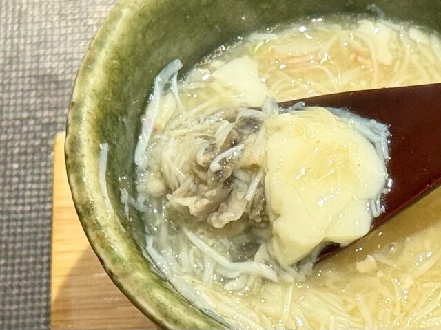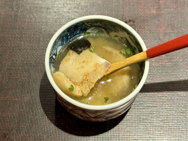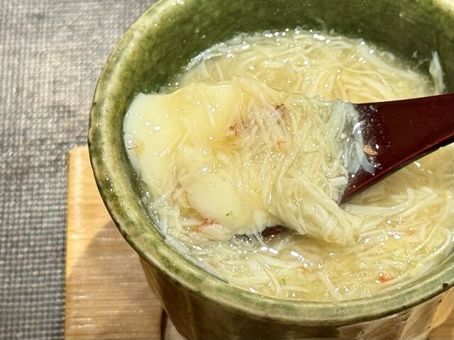 最後の「穴子」はふんわりと蒸されていて、口の中でとろけるような柔らかさ。そして「玉」は、甲殻類アレルギーに配慮した優しい蒸し卵。甘すぎず、ほっとするような余韻でコースの幕が静かに閉じました。