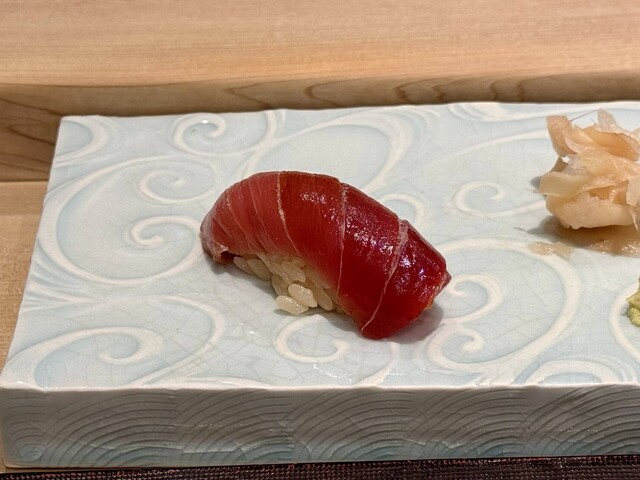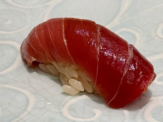 続いて「マグロの漬け」。赤身の旨みがじんわりと染み出す、しっとりとした質感。醤油の香りがしっかり入りながら、決して前に出過ぎず、米の旨みと手を取り合うようなバランスです。