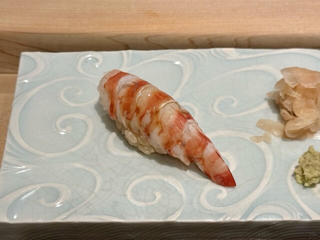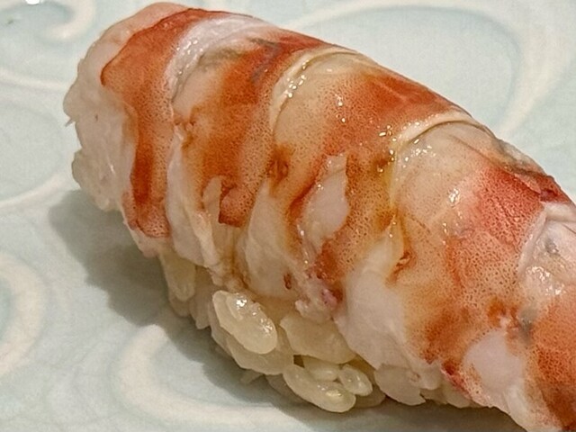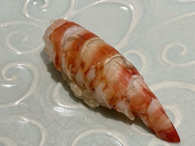「車海老」は火入れされ、鮮やかな赤。ぷりっとした弾力とともに、噛むごとにじんわりと甘みが溢れ出します。