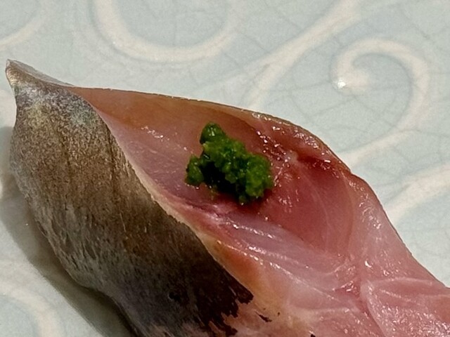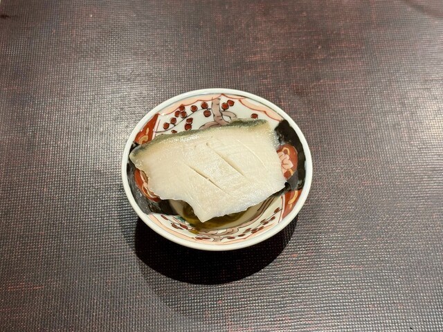 「鰊」は、上に薄くスライスされた干瓢と薬味が添えられています。この組み合わせが絶妙で、ニシン本来の豊かな旨みを最大限に引き出しつつ、青魚にありがちなクセや臭みを見事に抑えています。