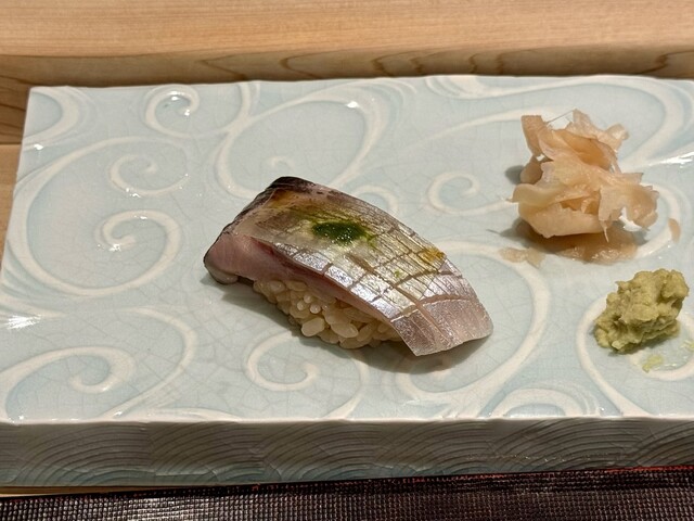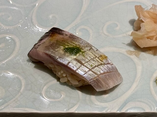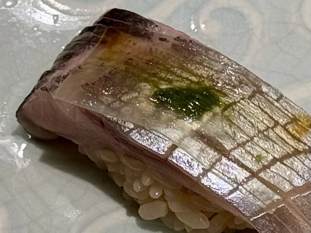 「鯵」は肉厚でもっちりな食感でありながら軽やかな脂と青魚特有の香りが、米の甘さを引き立て、まとまっています。
