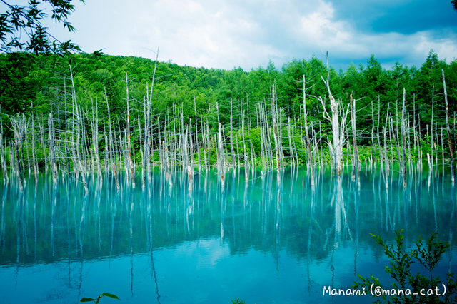 富良野からノロッコ号に乗って美瑛まで行きましたが、青い池が綺麗でした。