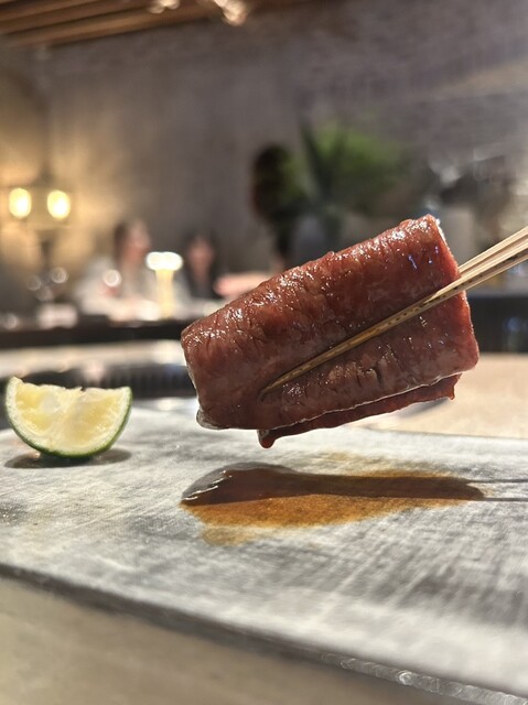 薄切りは、驚く程のぷんわぷんわシルキー感。綺麗に入ったサシで、そのまま舌を滑りそうな程。