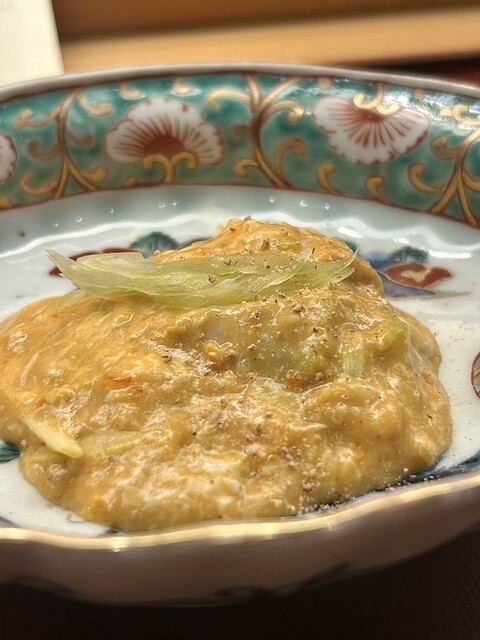 蟹は火入れで水分が抜け旨味が濃くなり、百合根の甘さとよく合います。
