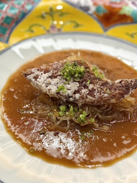 優しい和出汁に合わせることが多い鱧を、辛酸を抑えた濃厚なトムヤムクンで頂く斬新な一品。