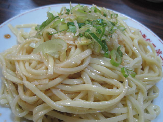 これが伝説の裏メニュー『パタン』。太めの中華麺をゴマ油とたっぷりのニンニクでまぶしたもの。