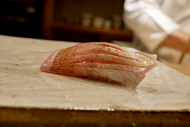○ 鯨、尾の身、葱のすりおろしを巻いて