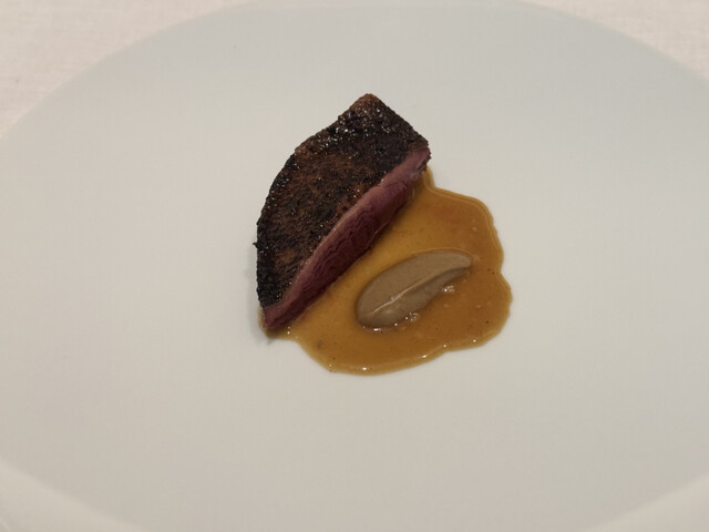 ○尾長鴨の炭火焼き、なめ茸のと牛蒡のソース