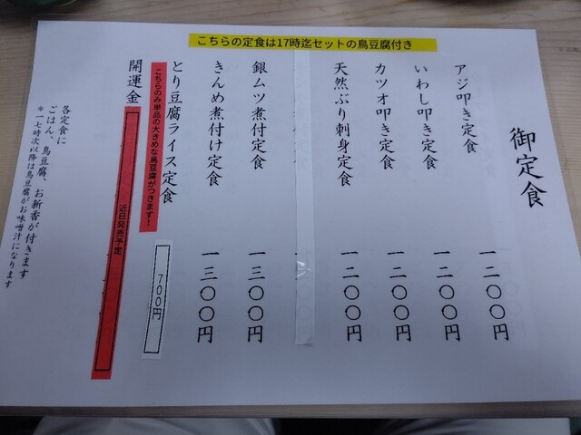 定食メニュー