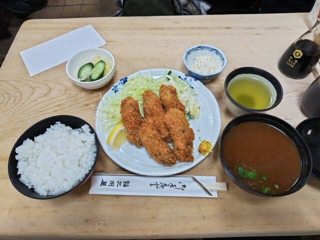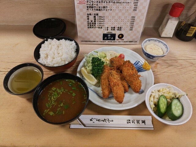 カキフライ定食(ごはん、味噌汁、お新香付き)[1,800円]、タルタルソース[100円]