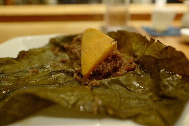 豚のスペアリブを蓮の葉で巻いた