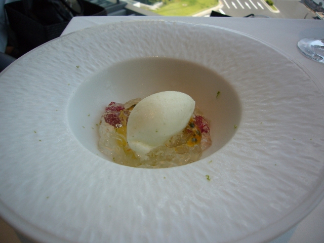 2012年11月軽く温めたサーモンの軽い燻製、ゴマ風味、山葵のヴィネグレット