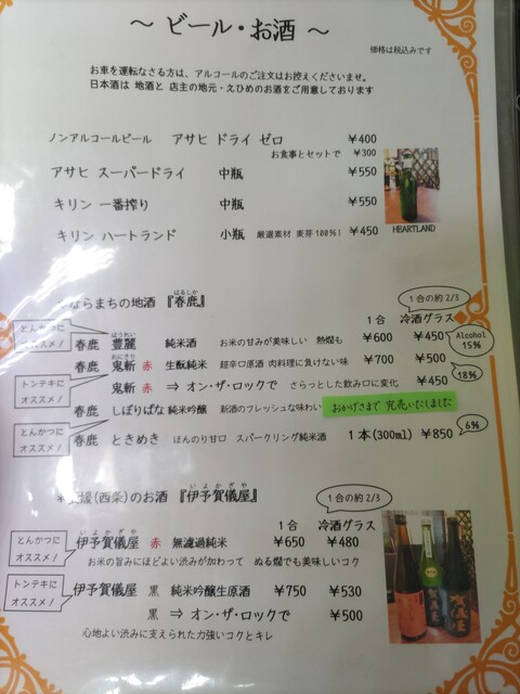 食事のメニュー表は1枚なのですが、店主の拘りである