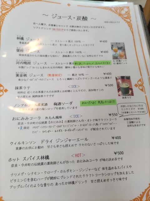 メニュー表の説明を読んでからいただくと、体にいいものを