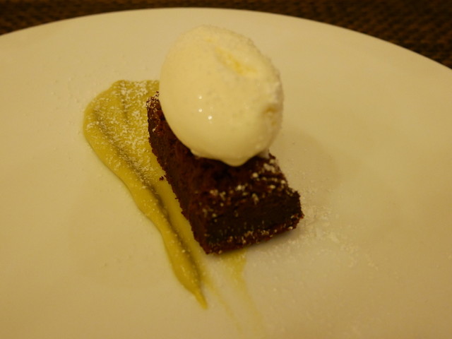 デザートに、ガトーショコラにアイス、ピスタチオのソースを頂き、最後は濃いめの美味しいコーヒー。
