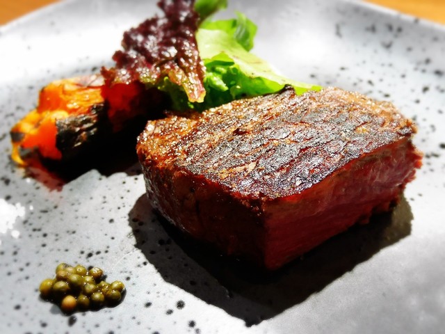 外側は、カリッと程よい焼き目で、中はレアですけど、全く臭み等感じさせないステーキ。