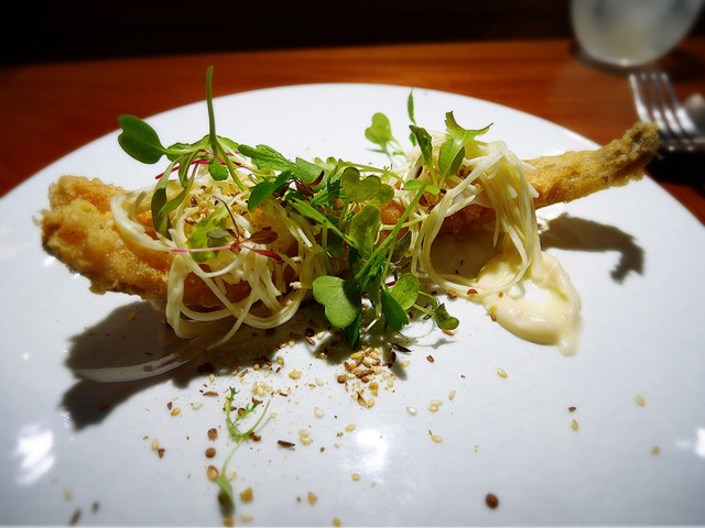炭酸水を加えて、揚げているせいか、衣がふんわり、さっくりで軽い食感。根セロリの柔らかいソースとエスニック風のクミンシードの香りとの相性も良いです。