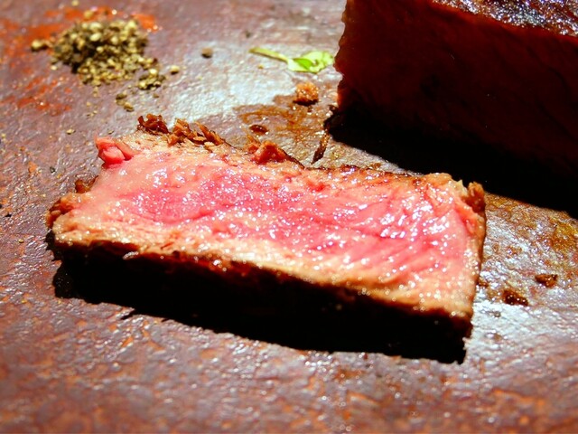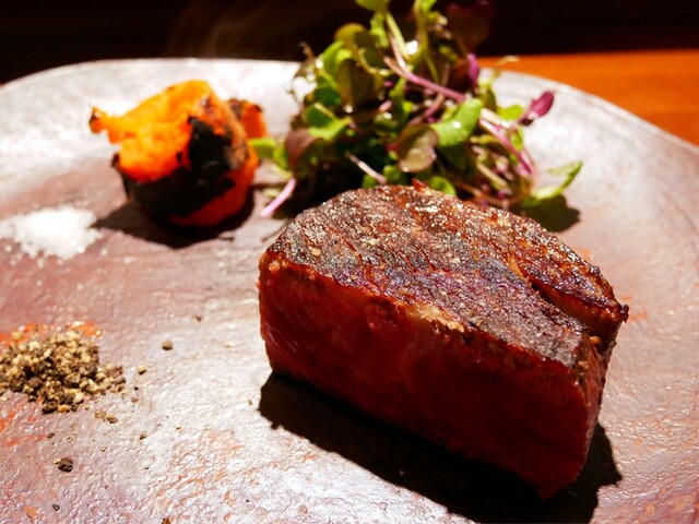 薪焼きで、牛の旨味が凝縮された素晴らしいステーキ。