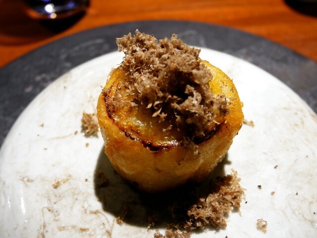 葱の甘さが引き出された一品で、外の衣はカリッとしていて、葱が苦手な方でも、美味しく頂けるお料理。鰹節のように、削り出されたフレーク状のトリュフの香りとも良く合います。