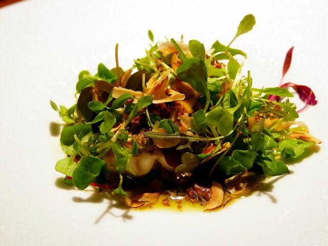 二回目なので、前回程の感動はありませんが、質・量共に申し分ありません。ほっくりした人参とレモンの酸味で和えたマイクロリーフのサラダも口直しにぴったりです。