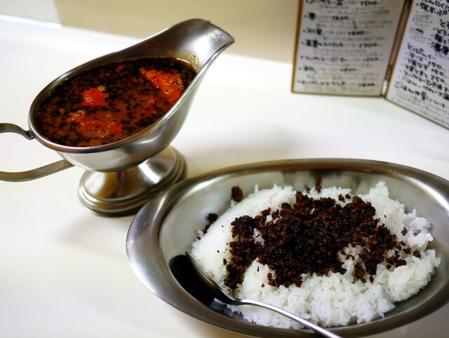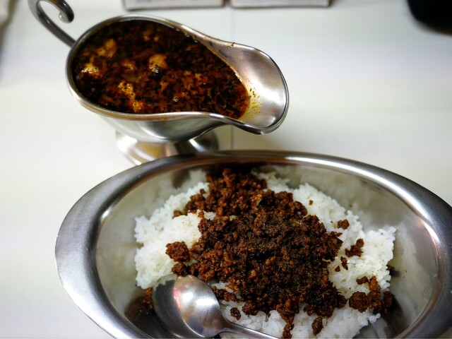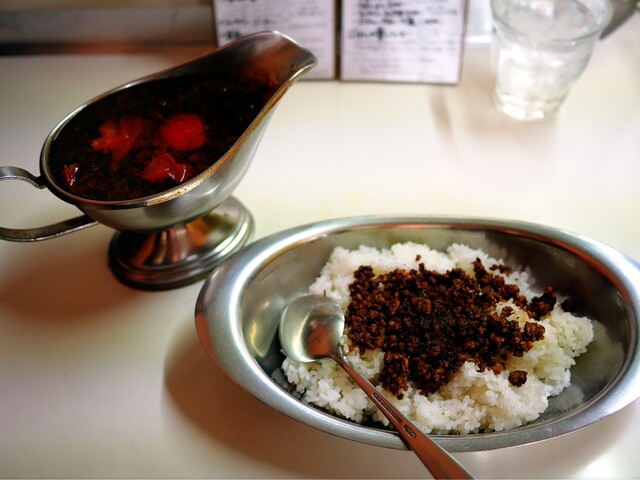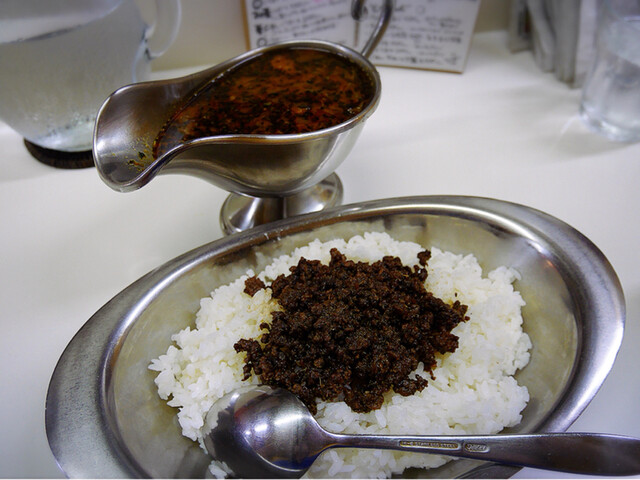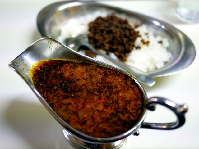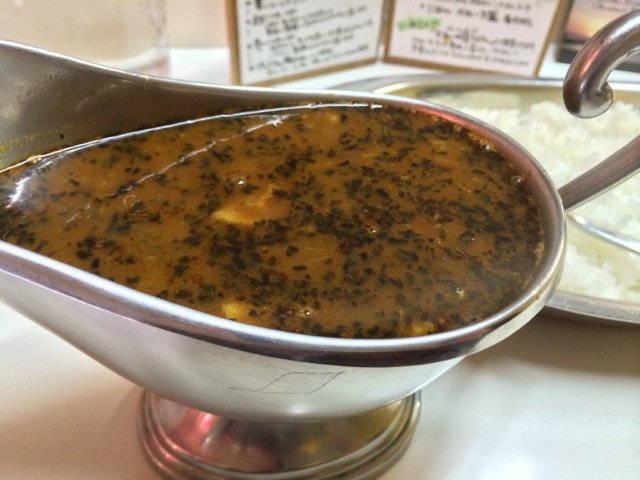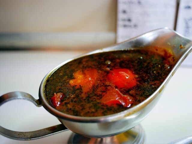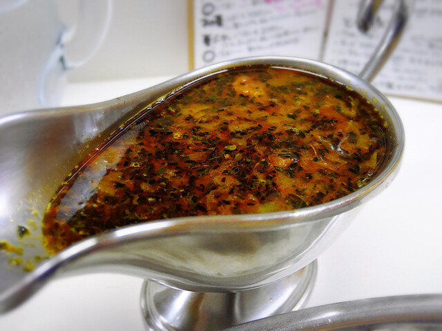 グレイビーボートで提供されるスープカレーとライスを別々に食べ進めるのが此方のお店の流儀。