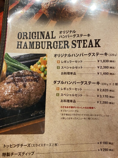 此方のお店は、首都圏で一番好きなハンバーグレストランで、満足度が一番高いメニューはダブルハンバーグです。本日はステーキが食べたくて、初めて下記を注文しました。