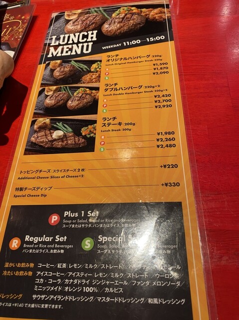 ハンバーグは元より、ステーキも価格に見合う品質です。
