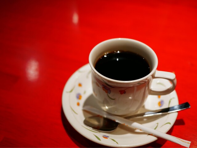 食後のホットコーヒーで、美味しいハンバーグランチを〆ました。