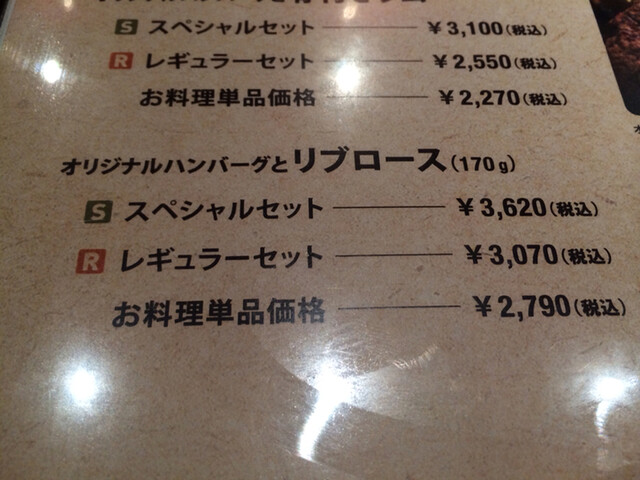 奮発して、■オリジナルハンバーグとリブロースのセット@3,070円にしました。