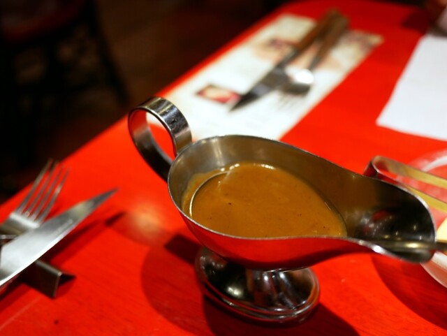 ソースポットで提供されるソースは、相変わらずのスパイシー&フルーティーで、とても美味しく、此方のハンバーグに良く合います。