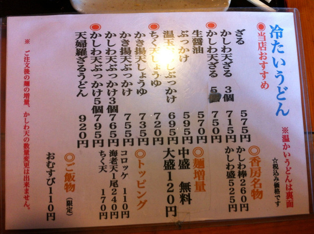 これと、かけうどん(小)セット¥1370と、かしわ棒¥260を注文した。