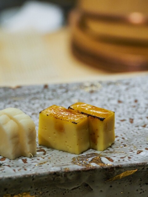 終盤のとろたくにもキャビアと金粉が添えられ、最後まで贅沢な驚きが続きます。締めを飾る卵焼きは、鰹節とお酒の風味が効いた、まるで上質な和スイーツのような口どけ。ゆずが爽やかに香るべったら漬けや、お出汁が身体に染み渡るにゅうめんまで、すべての皿に作り手の細やかな感性が宿っていました。