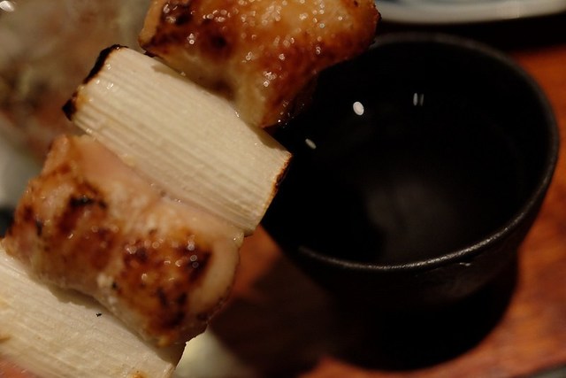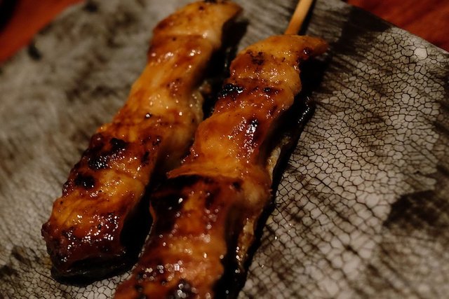 で,ここの部分の脂がジューシーでとても美味しい部位の串です。