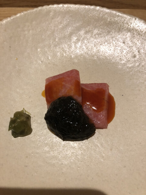 全部美味しいのですが、変化もあり ソース使いも斬新。器もセンスが良く、おまけに お酒も合うので このお店なら 日本酒好きならたまらないでしょうね! 見た目の美しさと味もいいけど、しつこさも無く。 最後まで楽しめました。